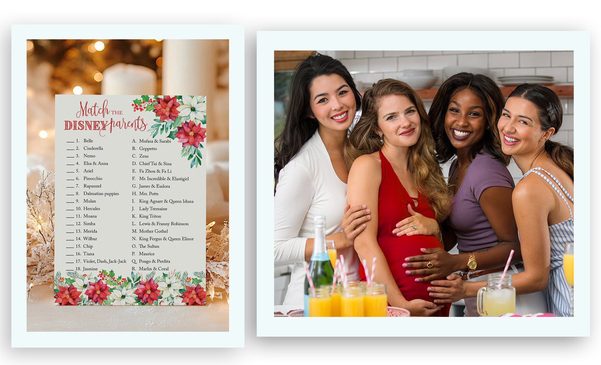 Christmas Baby Shower Game – Disney Parent Match – 25 Pack | Fun Holiday Baby Shower Activity & Xmas Party Game