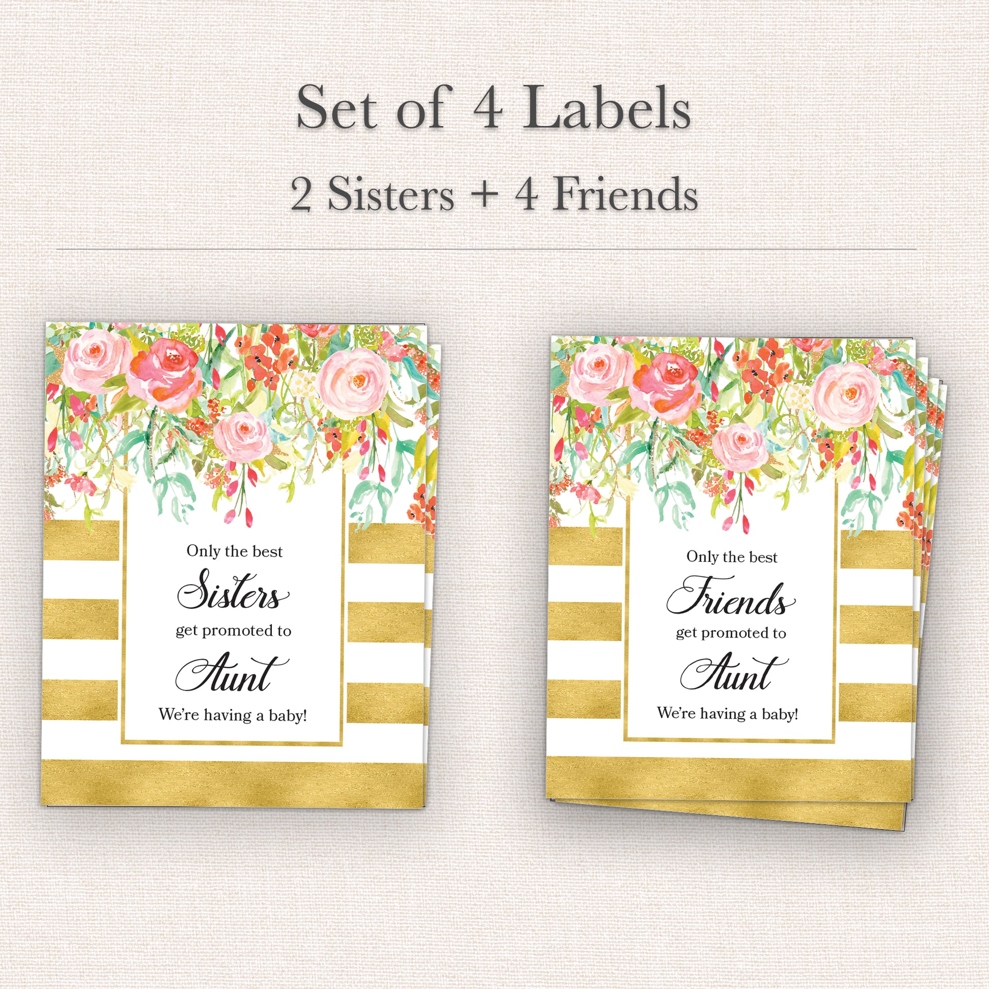 SET of 6 includes: 4 Friends and 2 Sisters Wine Labels. Announce your special news, "we are having a baby", "we are pregnant" with these elegant labels. A perfect pregnancy announcement gift!