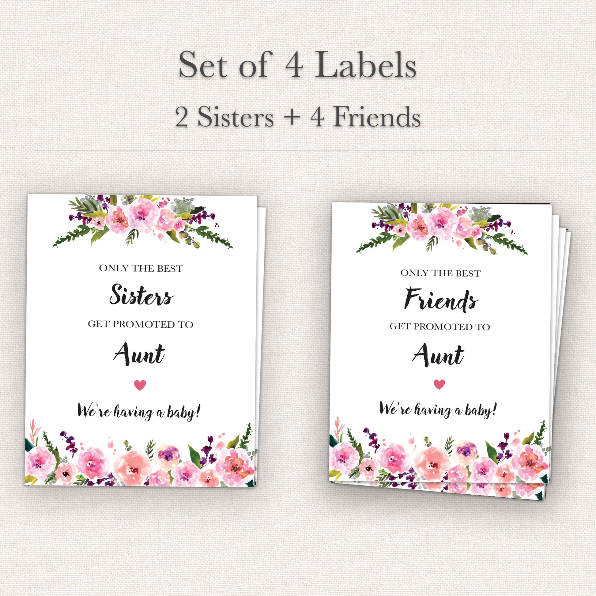 SET of 6 includes: 4 Friends and 2 Sisters Wine Labels. Announce your special news, "we are having a baby", "we are pregnant" with these elegant labels. A perfect pregnancy announcement gift!