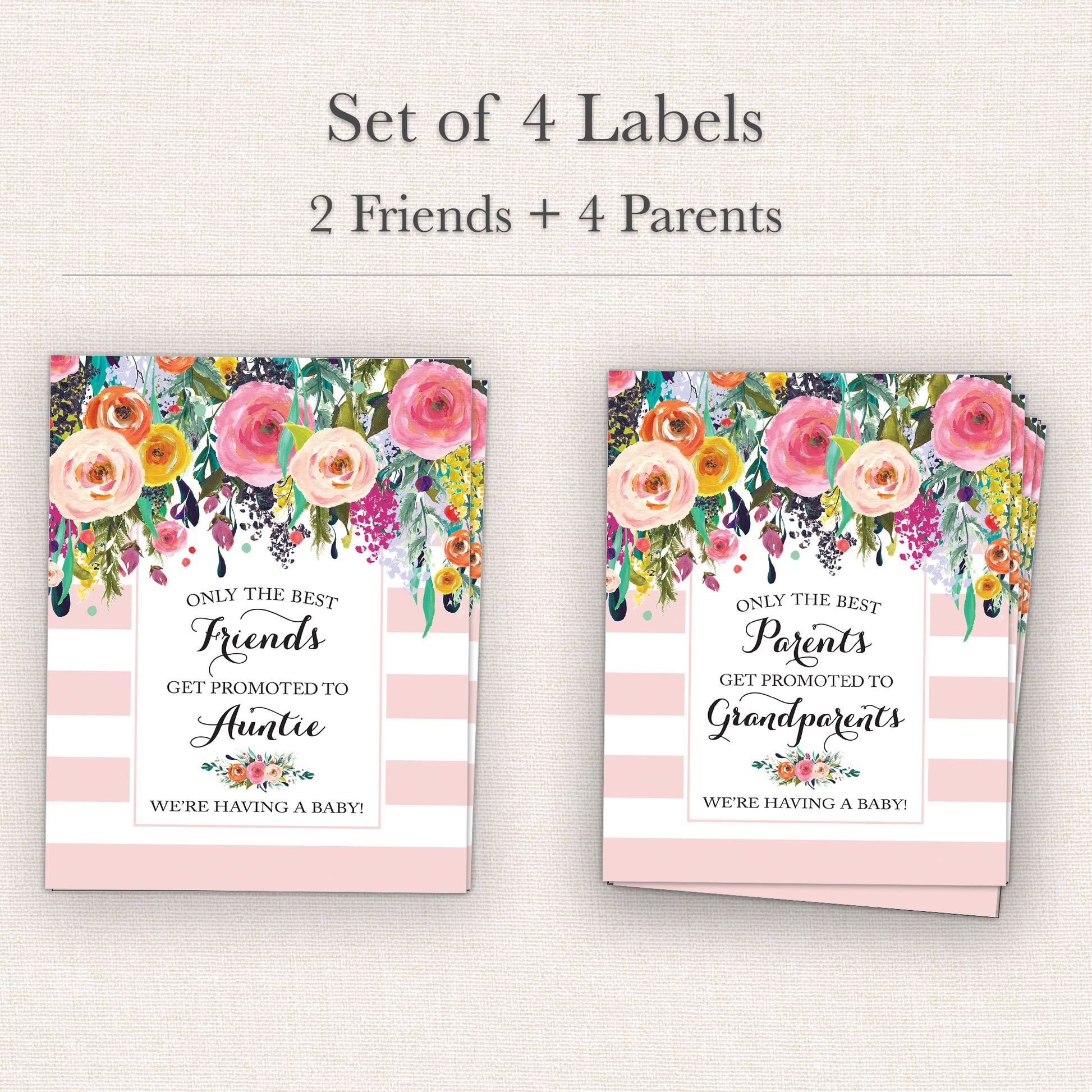 SET of 6 includes: 4 Parents and 2 Friends Wine Labels. Announce your special news, "we are having a baby", "we are pregnant" with these elegant labels. A perfect pregnancy announcement gift!