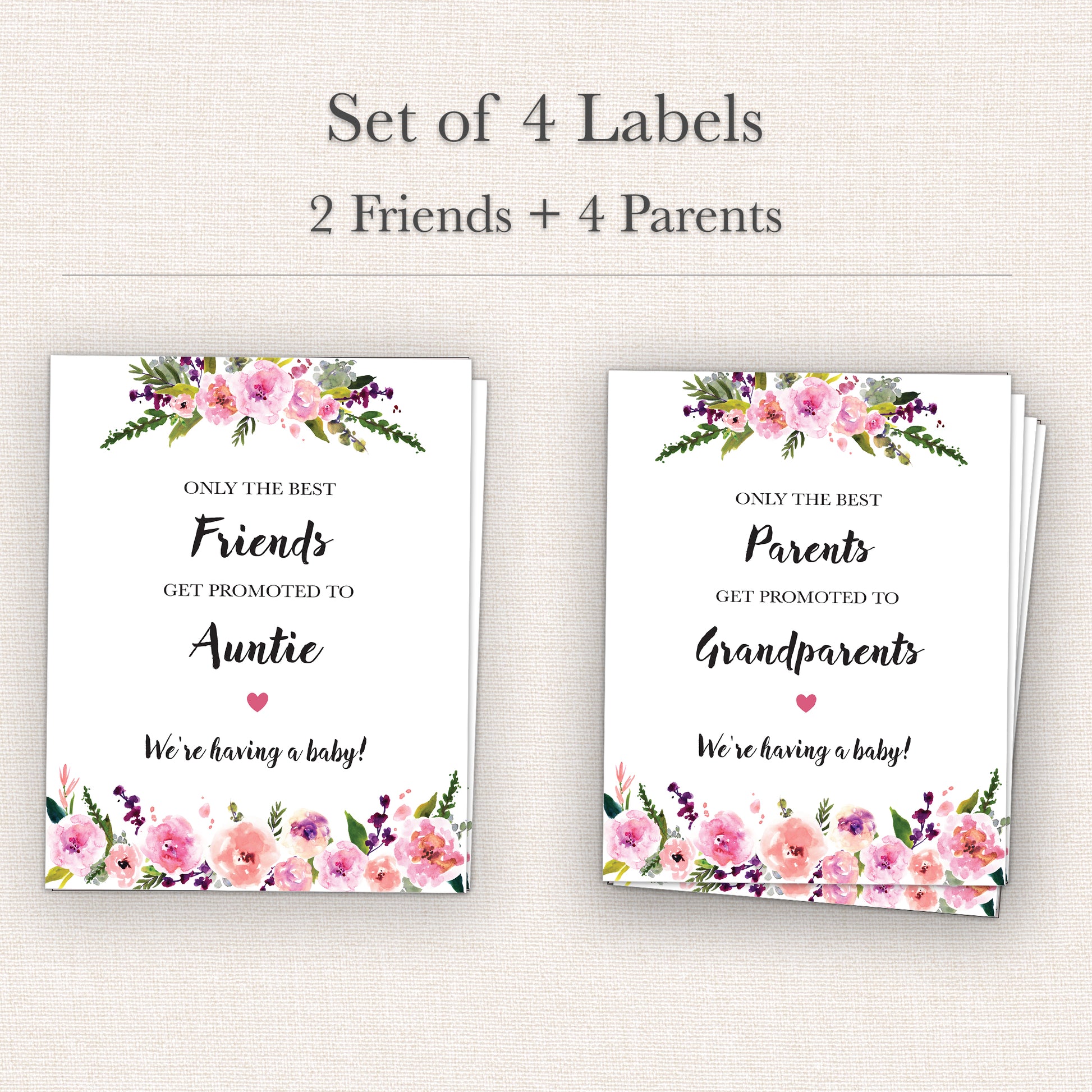 SET of 6 includes: 4 Parents and 2 Friends Wine Labels. Announce your special news, "we are having a baby", "we are pregnant" with these elegant labels. A perfect pregnancy announcement gift!