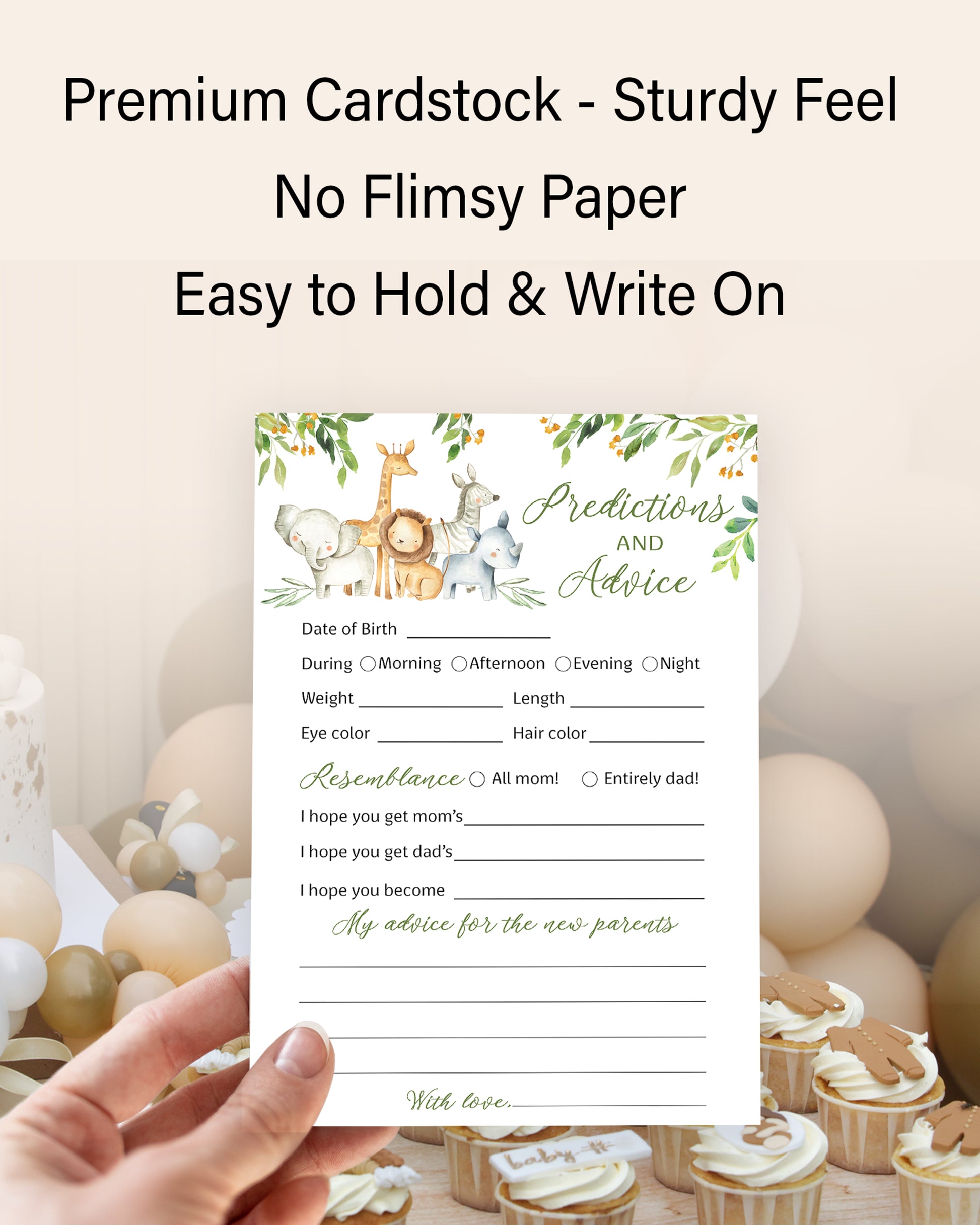 Safari Animals Baby Shower Game - Predictions & Advice Cards • SET of 25