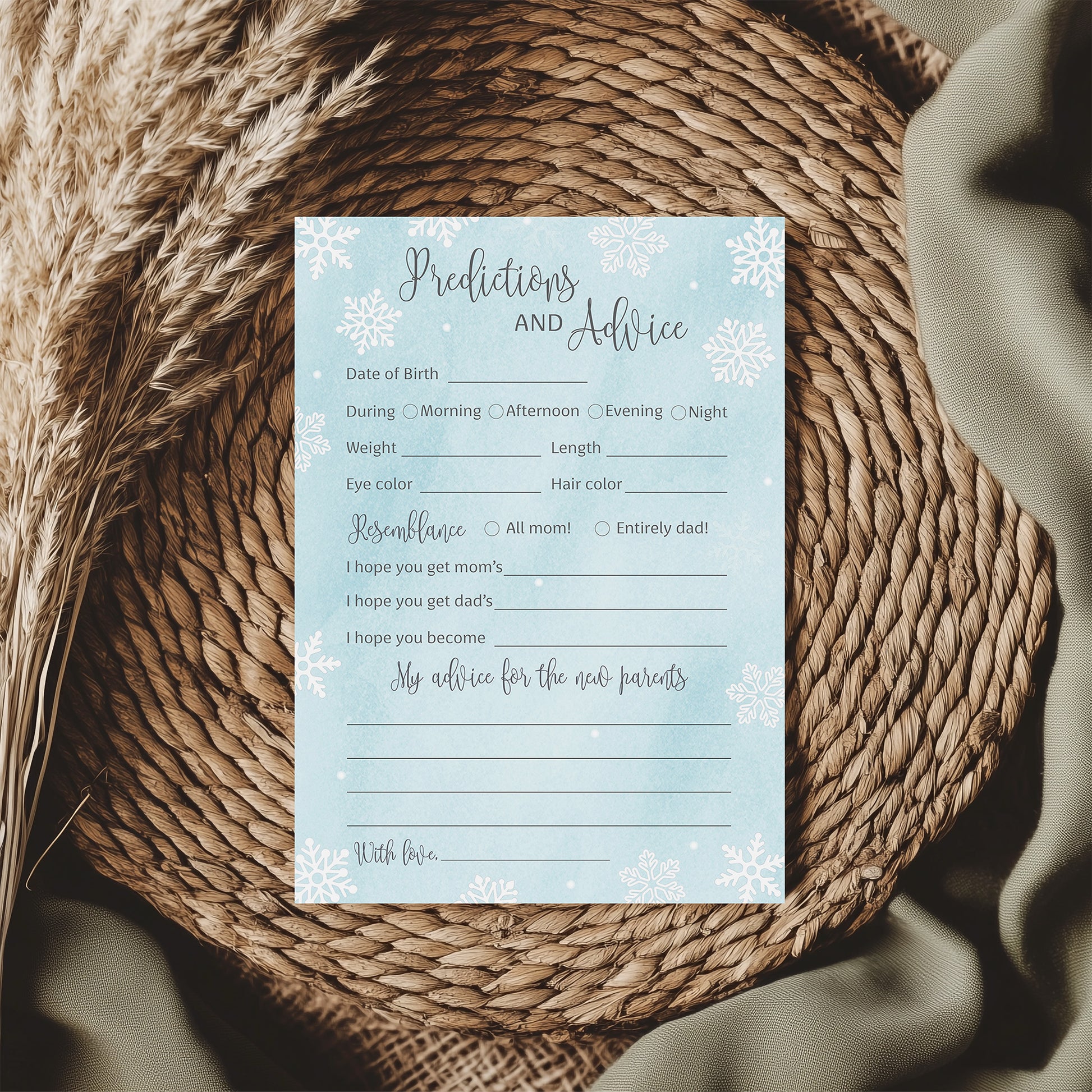 Snowflakes Baby Prediction & Advice Cards • Pack of 25 • Blue Boy Winter Wonderland Baby Shower