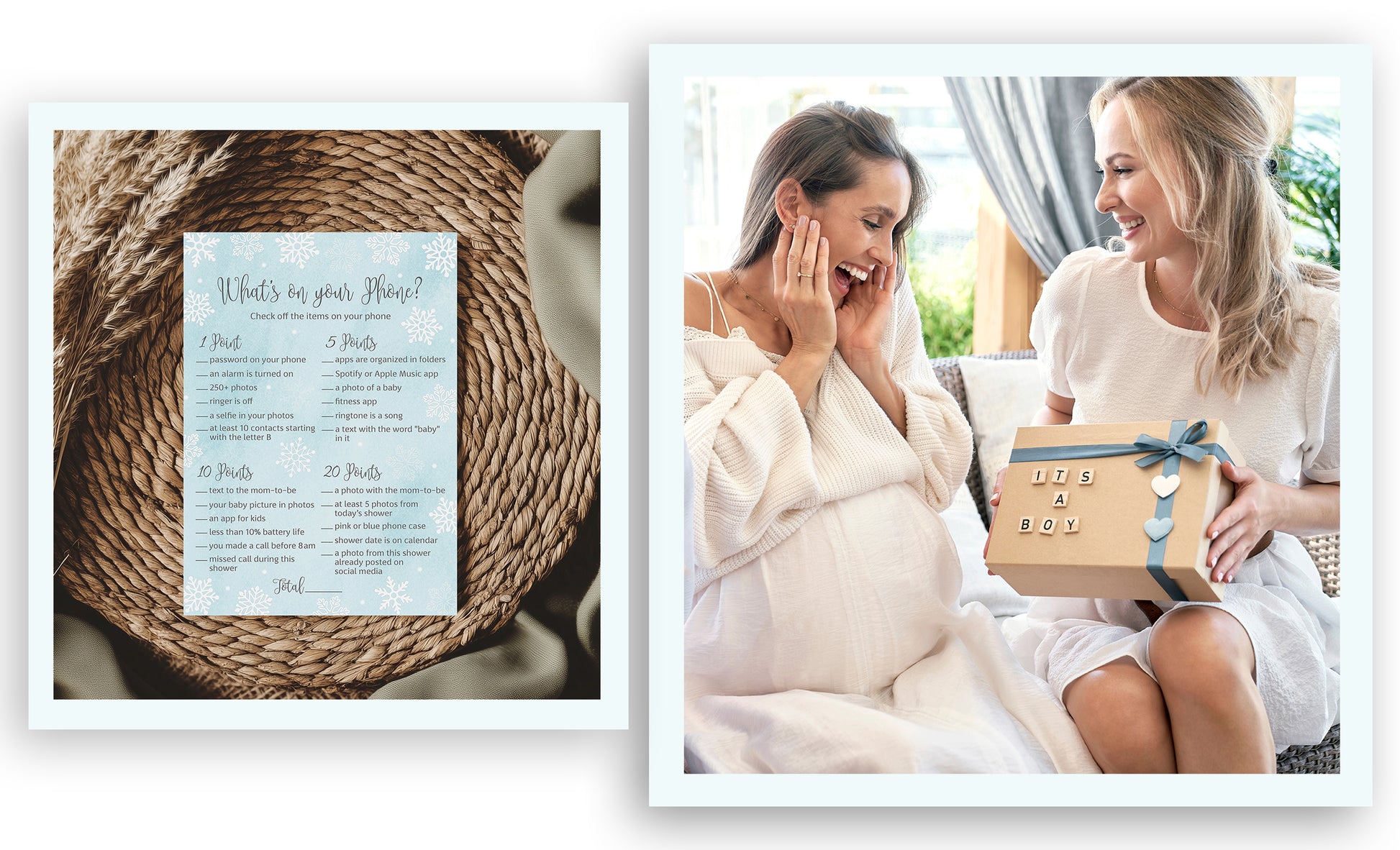 Snowflakes Baby Shower Game – What’s on Your Phone • Pack of 25 • Winter Wonderland Blue Boy Baby Shower Game