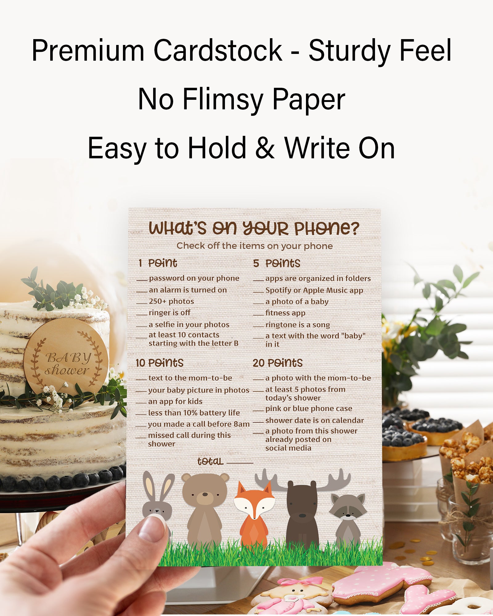 Woodland Animals Baby Shower Game - What's On Your Phone • SET of 25