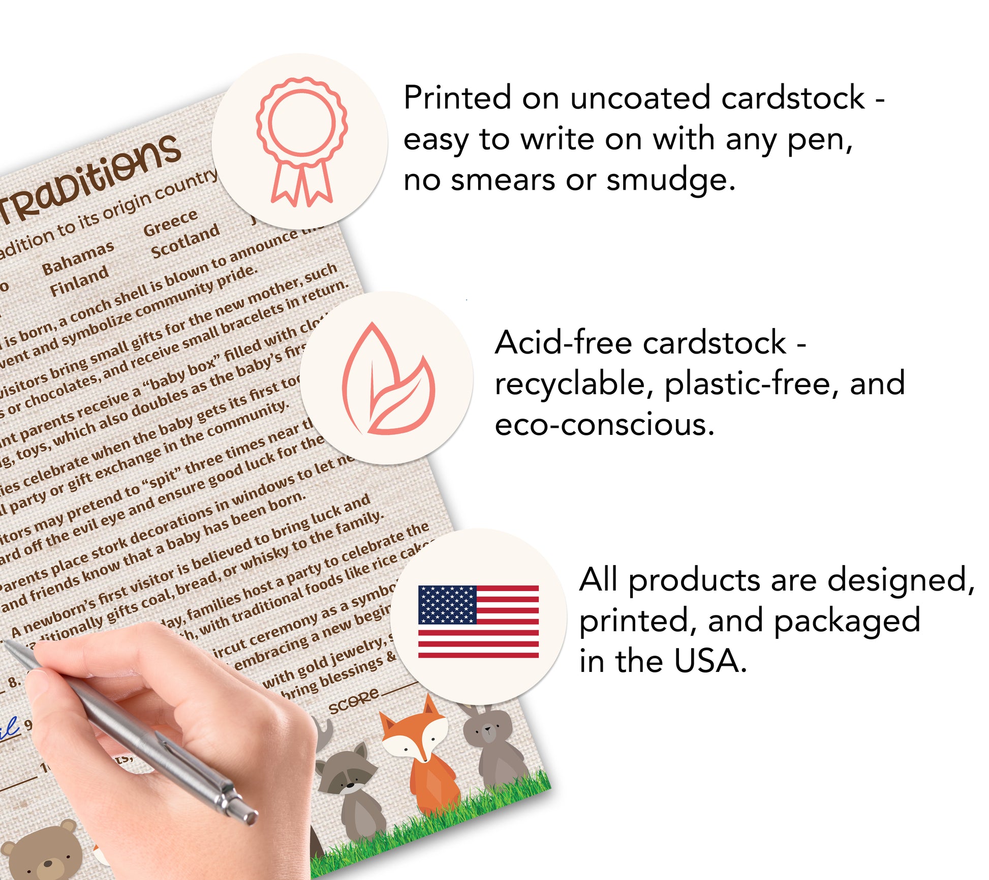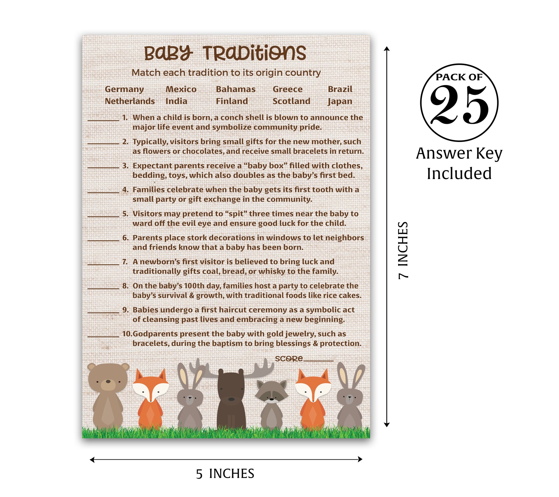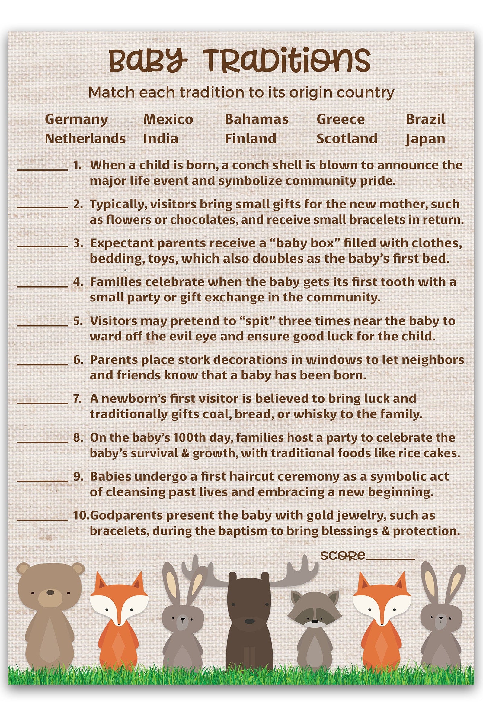 Woodland Anmals Theme Baby Shower Games • BABY TRADITIONS around the World Game • Pack of 25